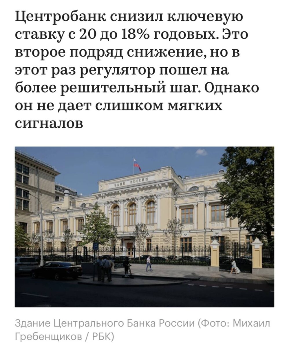 Центробанк снизил ключевую ставку с 20 до 18% годовых источник