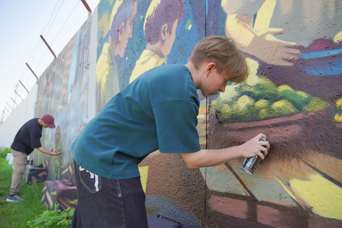 На набережной в Иванове завершают мурал, посвященный 80-летию Победы На набережной Уводи в Иванове продолжается работа над арт-объектом, приуроченным к 80-летию Победы, начатая художниками еще в июне. Проект включает в себя серию муралов в виде граффити, посвященным подвигу советского народа, сценам фронтовой жизни, семейным историям военных лет. Особое место занимает портрет почетного гражданина региона, маршала Победы Александра Василевского. Над каждым фрагментом трудятся сразу несколько молодых авторов. В условиях жары они работали ежедневно по 12 часов. Пока завершены два из трех муралов. По завершении работ стену покроют антивандальным защитным слоем. Фото: Дмитрий Рыжаков