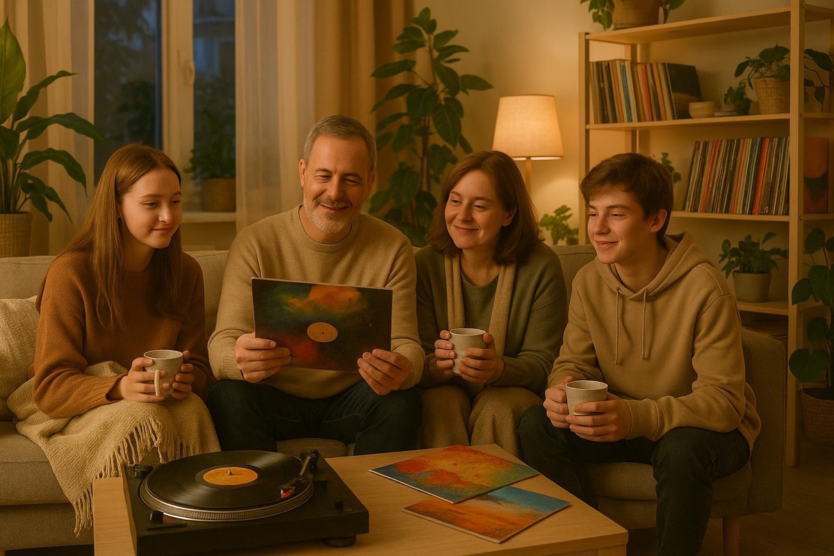 И что удивительно — новое пространство словно вдохнуло в дом иной воздух. Комната стала легче; у нас появилась даже привычка — каждую пятницу вечером устраиваться на диванах под пледами, выбирать одну пластинку и слушать всем вместе. Иногда — смеялись над старым звуком. Иногда — кто-то угадывал мелодию из маминых школьных лет. Иногда — просто молчали, потому что музыка порой говорит за нас.