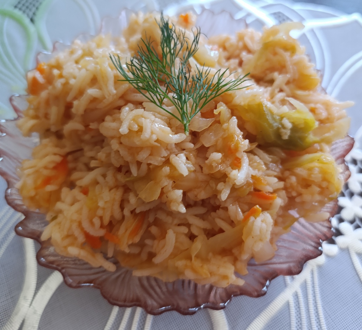 По факту это тушеная капуста с рисом. Без мяса, без фарша.