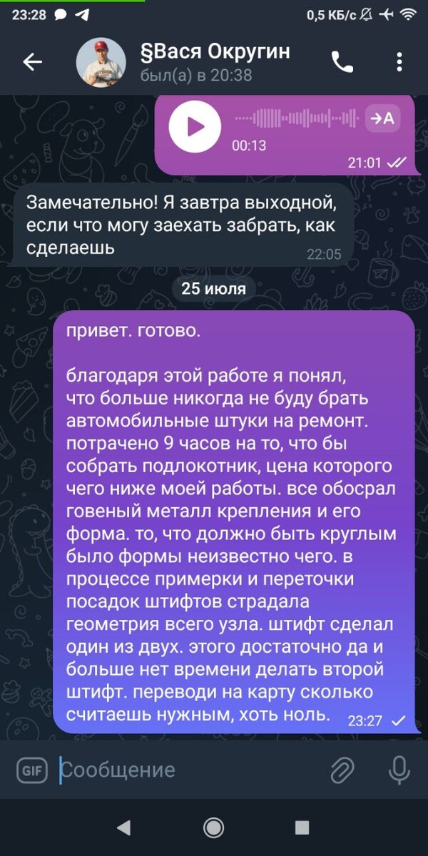 хорошего опыта я хапнул... больше "токарку с улицы" я не буду делать вообще. 9 часов это тумач.