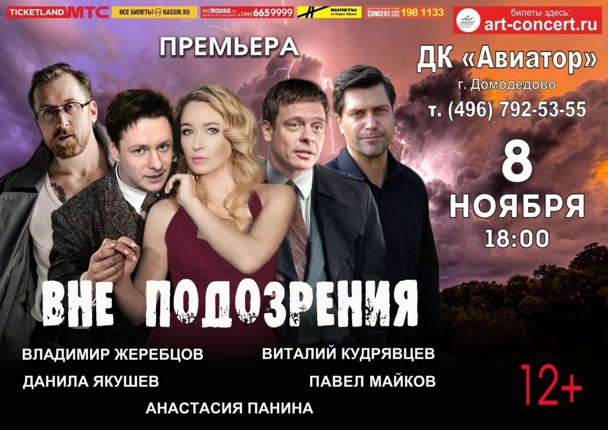 ✨ ❗️«ВНЕ ПОДОЗРЕНИЯ» ❗️ Дорогие друзья! Приглашаем на спектакль! 🔸Добро пожаловать в мир загадок и интриг. Главная героиня, красивая и богатая женщина, оказывается втянутой в событие, когда случайное убийство ставит под вопрос всё её существование. В поисках ответов она сталкивается с тайнами, подозрениями и неожиданными союзниками. Вопросы верности, предательства и любви становятся ключевыми элементами этого спектакля. Действие обещает держать вас в напряжении до последней минуты и оставить вас с вопросами о справедливости и морали. 🚫 Возраст: 12+ 📆 08.11.2025🕒18:00 🏢 Городской дом культуры «Авиатор» 📍 г. Домодедово, ул.Гагарина, д.1 🎫 Купить билет: https://art-concert.intickets.ru/seance/63026768 ✅ Мероприятия Домодедово https://dzen.ru/id/66f10385cc4c5a16f7b5fb02 http://vk.com/domodedovo_events http://dzen.ru/domodedovo_events
