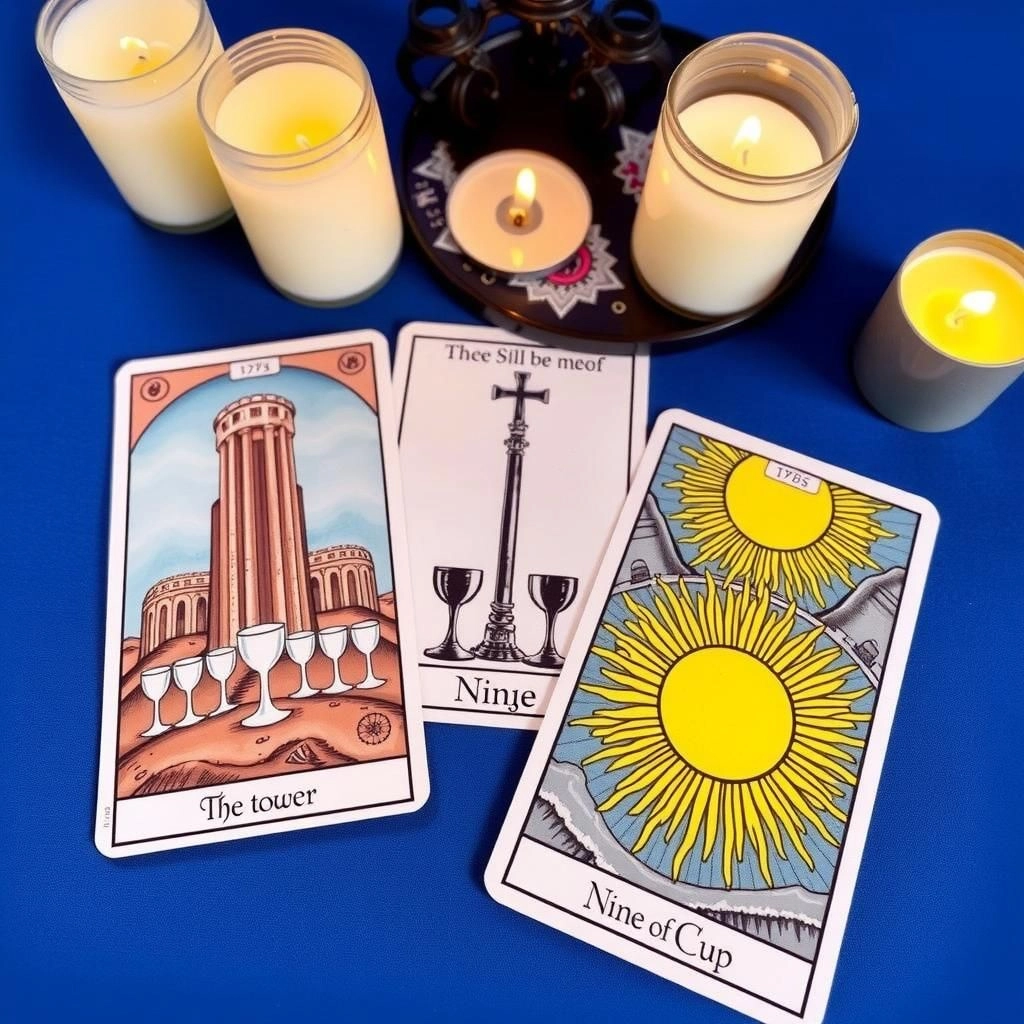 Расклад из трёх карт — Башня, Девятка Кубков и Солнце — рисует динамичную картину развития событий в Вашей личной жизни в ближайшие дни. Башня говорит о том, что всё начнётся с неожиданного события или осознания, которое может встряхнуть привычный порядок. Это может быть конфликт, разрыв или момент истины, который разрушит иллюзии. Однако Девятка Кубков обещает, что после этой встряски наступит период внутреннего удовлетворения и гармонии — Вы почувствуете, что всё произошло к лучшему. И, наконец, Солнце указывает на светлый финал: радость, ясность и расцвет в личной жизни, будь то укрепление отношений, новые знакомства или просто внутреннее счастье.