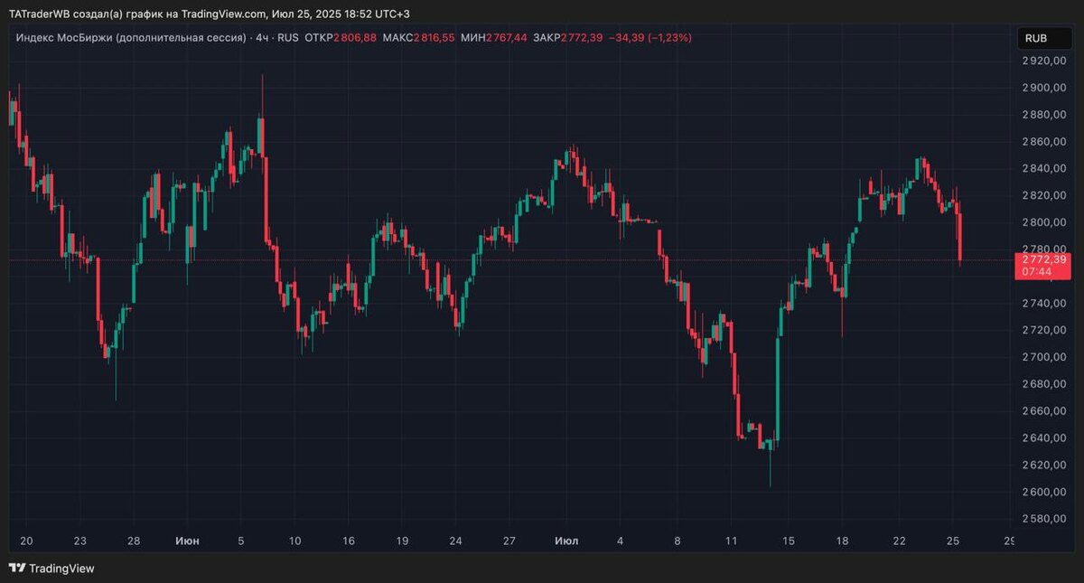 ❓ Что будет дальше и как все получается? Дабы быть в контексте написанного обязательно рекомендую ознакомиться с голосовым выше. ✅ Так вот, закрытие по индексу шортовое, но как всегда с большими нюансами. Во первых рынок слили на позитиве, ведь ставку то опустили на 2%, напоминаю… Падение получилось слишком резким, а значит встать на продолжение движения, в шорт будет не совсем логично. На часовом графике индекс уже находится в перепроданности. 📝 Поэтому отсюда сразу же вывожу, что ждать какого то большого краха и обвала точно не стоит. В ближайшее время жду отскока к 2800. Это может быть через два варианта. Первый вариант коррекция к 2750 и уже от нее рост в сторону 2780. Либо же плюс минус с текущих рост к 2800. Да и в целом, если посмотреть на тенденции, то они каждую неделю меняются. Негатив, который был сегодня, в пятницу спокойно могут откупить в понедельник… Кстати от 2750 можно будет смотреть лонги. Об этом подробнее в понедельник. Всем шикарных выходных! 🤝