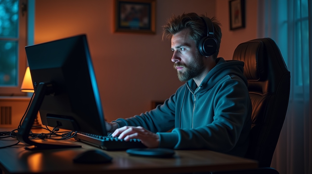 Максим сидел в той же позе, что и утром — спина идеально прямая, пальцы танцуют по клавиатуре с виртуозностью пианиста. Синий свет экрана окрашивал его лицо, придавая ему почти мистический вид сосредоточенного гения.