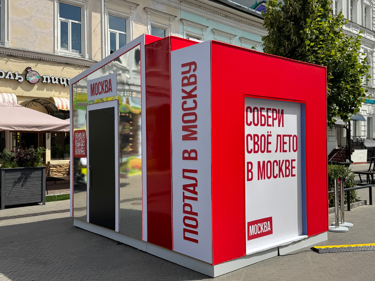 Посреди улицы Баумана в Казани появился портал способный перенести человека в другое место – пусть и виртуально. Сегодня в центре города открыли телепорт на Баумана, который позволяет за пару минут «оказаться» в Москве. Портал установлен на улице Баумана, 58. Это мультимедийная инсталляция, которая работает с 25 июля по 20 августа. Можно увидеть колесо обозрения «Солнце Москвы» на ВДНХ, маркет «Сделано в Москве» на Болотной площади, залы Третьяковской галереи, березовую рощу ДК ГЭС-2. Также в ролике доступны прогулка на двухэтажном автобусе RUSSBUS, поездка на электросамокате, игра в падел на площадке «Лета в Москве» и Красная площадь. Готовый ролик скачивается по QR-коду. А цифровая проекция гостя сразу появляется на ВДНХ – москвичи и туристы могут увидеть приветы из Казани и других городов в реальном времени. Проект «Порталы в Москву» реализуется в рамках стратегии «Москва +», которая направлена на укрепление связей между столицей и регионами. По словам Сергея Иванова, председателя