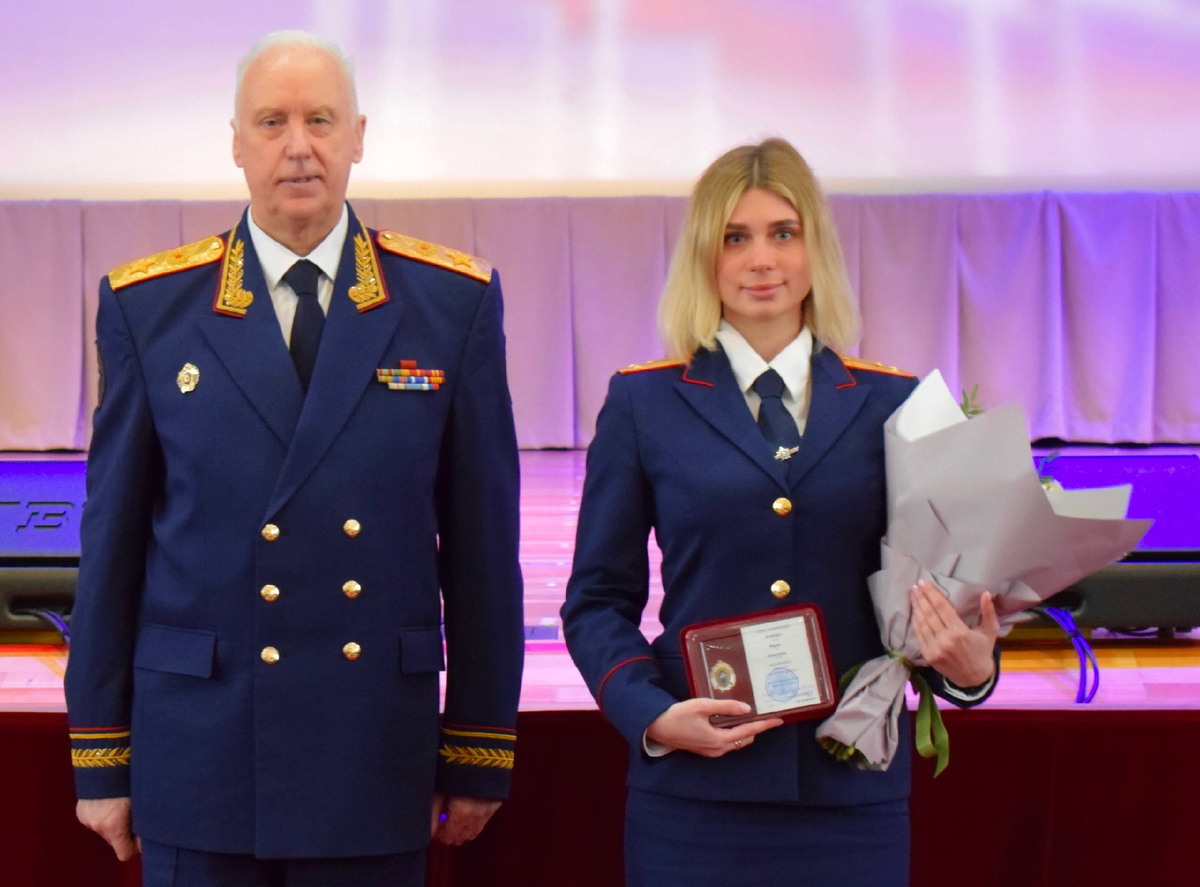 Знаком отличия «За службу закону» награждена руководитель отдела работы с обращениями, поступающими по информационным системам общего пользования, Мария Алексеевна Панова. Заслуженную награду на торжественном собрании ей лично вручил Председатель Следственного комитета России Александр Иванович Бастрыкин.