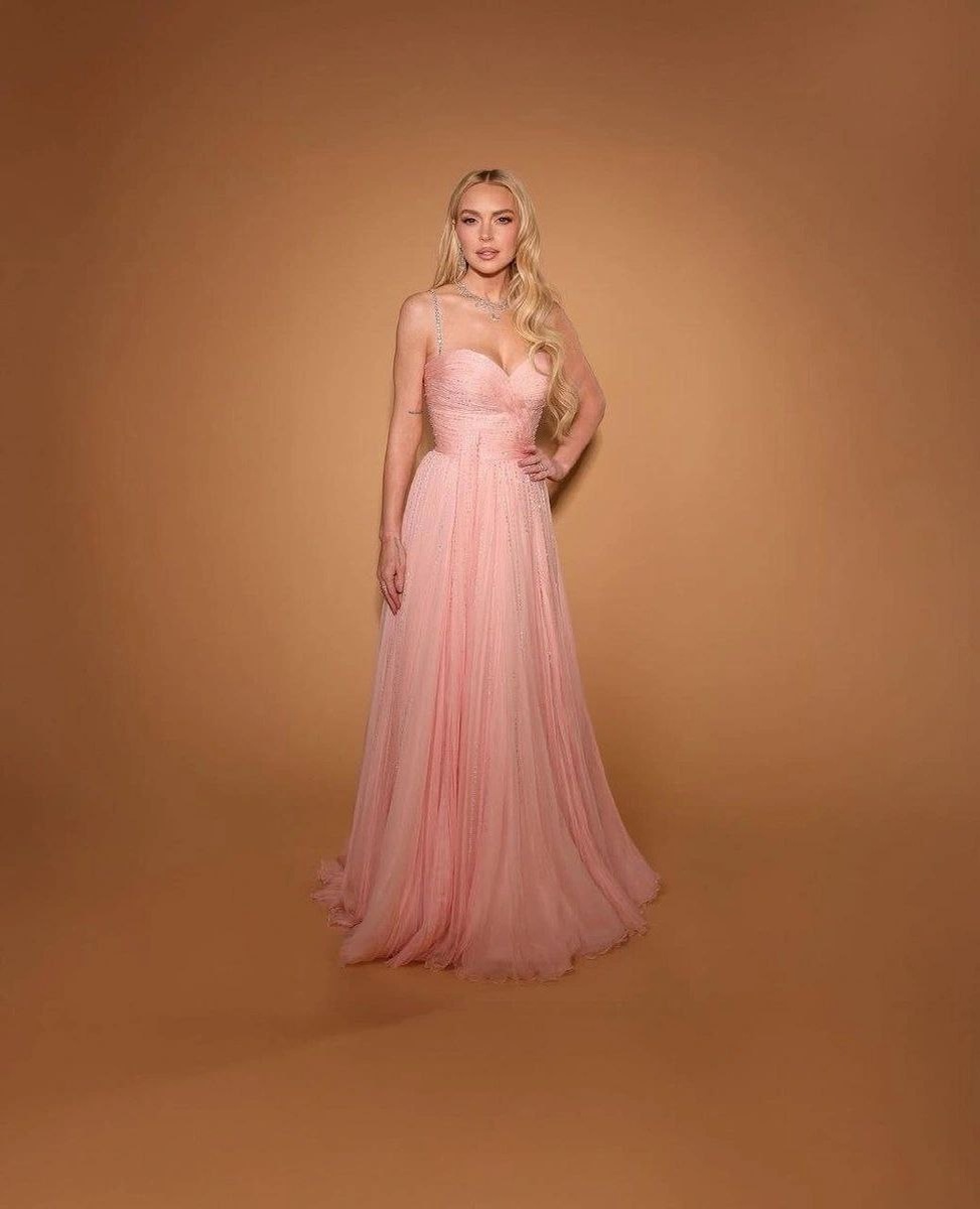 Линдси Лохан появилась на мировой премьере фильма «Чумовая пятница 2» в Лос-Анджелесе, одетая в нежно-розовое платье, напоминающее наряд принцессы из сказки Диснея. На мероприятии актриса выбрала платье от Miu Miu нежно-розового оттенка, украшенное множеством мелких серебристых страз. Тонкие бретели из кристаллов гармонировали с украшениями от Лоррейн Шварц, включая большое сверкающее колье и серьги-люстры. Я в восторге, что выйдет вторая часть легендарного фильма, очень жду👜💄 Линдси прекрасна🌸