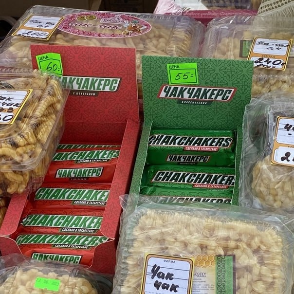 На прилавках магазинов были замечены Чакчакерсы! 🔥🔥🔥 Аналог знаменитого батончика производят в Татарстане. Видели такое импортозамещение по-татарски? А может быть даже уже попробовали? 😋 Чак-чак Норрис