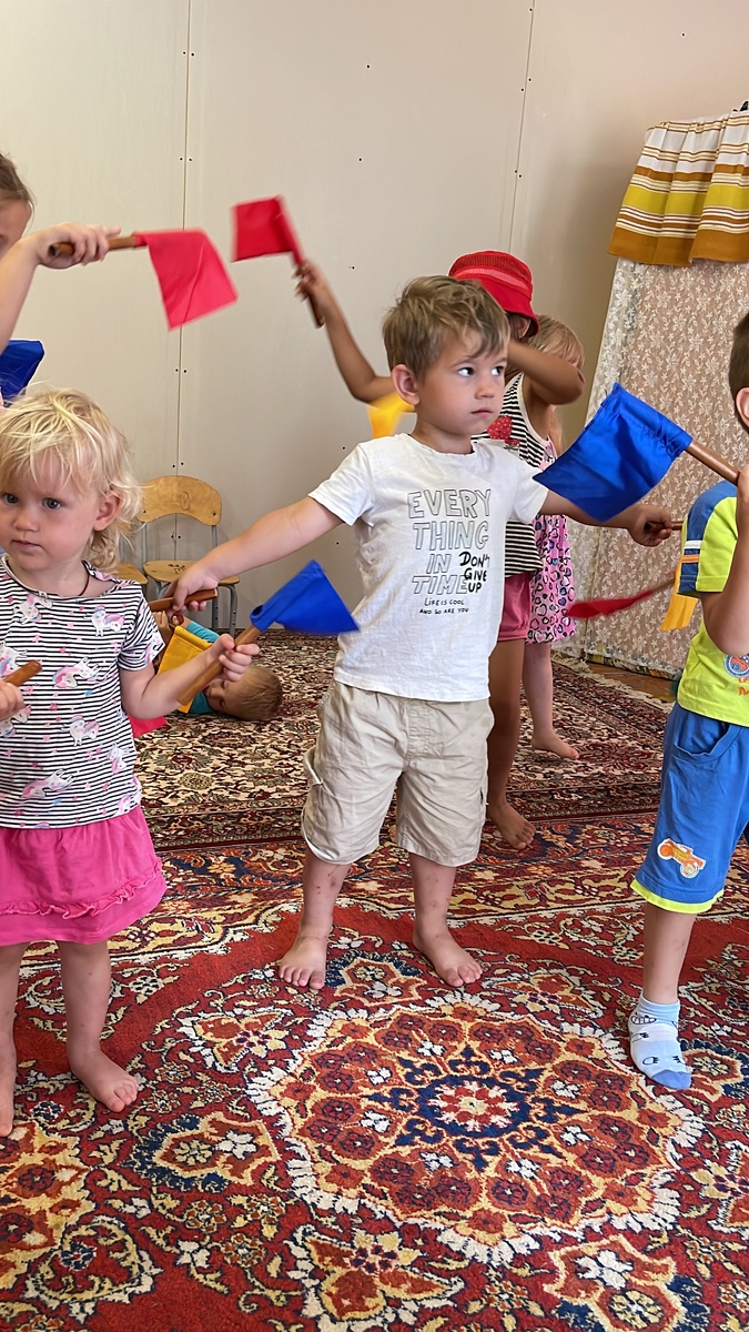 Сегодня мы проснулись в Средневековье. Дело в том, что вчера на концерте к Мери Попинс прилетел её друг - ворон и они решили, что было бы интересно нам всем переместиться в средние века, где существуют доблестные рыцари и прекрасные леди. Поэтому сразу после завтрака и часа послушания, все разошлись по «станциям вертушки», которые сегодня включали в себя следующее: -геральдика (придумывали и рисовали свой собственный герб) -изготовление мечей (мечи из полипропиленовой трубы и теплоизоляции) -стрельба из лука, метание ножей и топориков -отрядный час В это время мамы шили обмундирование для турнира - в виде 2-х шлемов, чтобы уберечь голову от ударов. Ну а детский сад в это время тоже не скучал играл в разные игры и танцевал под веселые песни: -сегодня например была и песенка-танец с разноцветными флажками(повторили цвета), -игра с мячиками(собери мячики по цвету в обручи) -песенка-стучалка с палочками(в которой даже малыши принимали участие с удовольствием) - рисование на улице н