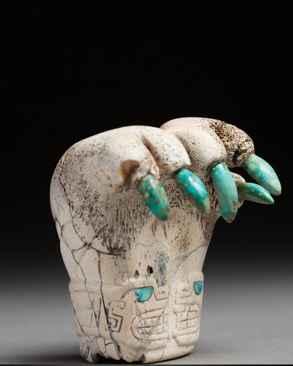 Лапка ягуара из человеческой кости. Да, в доколумбовой Америке были и такие «украшения». На снимке от аукционного дома LOT-ART показан артефакт из Перу 700 — 400 гг. до нашей эры. Ягуар был символом власти и силы, что и олицетворяли собой такие статуэтки.