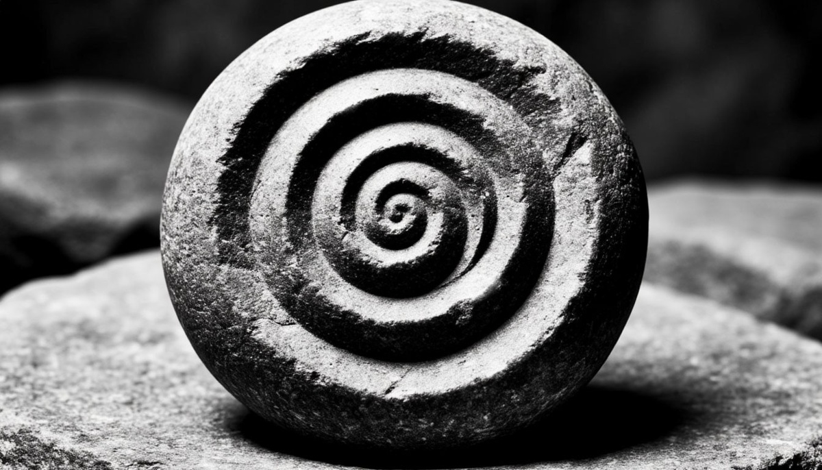 Он вытащил тяжелый диск, чуть больше ладони. Он был слеплен из глины( напоминание о древнем , забытом ремесле) , и покрыт тончайшей, невероятно сложной гравировкой. Это была спираль. Сперва казавшейся громоздкой и немного неуклюжей, но чем больше всматриваться, тем сильнее притяжение незамысловатого узора. Она начиналась чуть по одаль от края диска, широким, уверенным витком и сужалась к центру с пугающей математической точностью, углубляясь в самую сердцевину, в крошечную, абсолютно черную точку. Смотреть на нее было странно. Глаза невольно скользили по виткам, втягиваясь внутрь, к этой черной дыре. От диска исходил слабый холодок, и казалось, что он слегка… вибрирует.