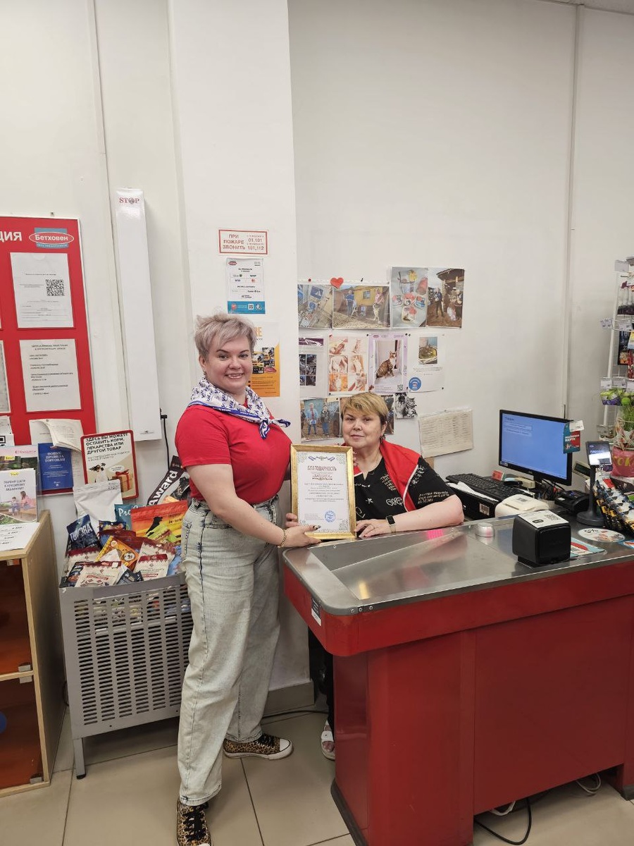 Благодарность за помощь животным Передала благодарственное письмо за подписью депутата Балашихи от «Единой России», председателя правления «Фонда «Защита» Сергея Чуракова за непосильную помощь зооприютам Балашихи, и в реализации проектов «Защита животных - это несложно» и «Добрые прогулки» руководству зоомагазина «Бетховен», расположенного в торговом центре «Вертикаль». От себя лично поблагодарила коллектив магазина и директора Галину Дементьеву. Напомню, что в рамках придуманного мной и реализуемого на территории Балашихи с 2022 года проекта «Защита животных - это несложно» проходит акция «Коробка помощи животным», участники которой оставляют в зоомагазинах «Бетховен» и «Рика» корм для подопечных зооприюта при конюшне «Пелагея», где реализуем проект «Добрые прогулки» и котодома «Мурлыка». Акция продолжается, и все желающие могут принять в ней участие, оставив продукты и вещи для животных в специально установленных коробках в зоомагазинах Балашихи: 🐈 «Бетховен» на ш. Энтузиастов, д