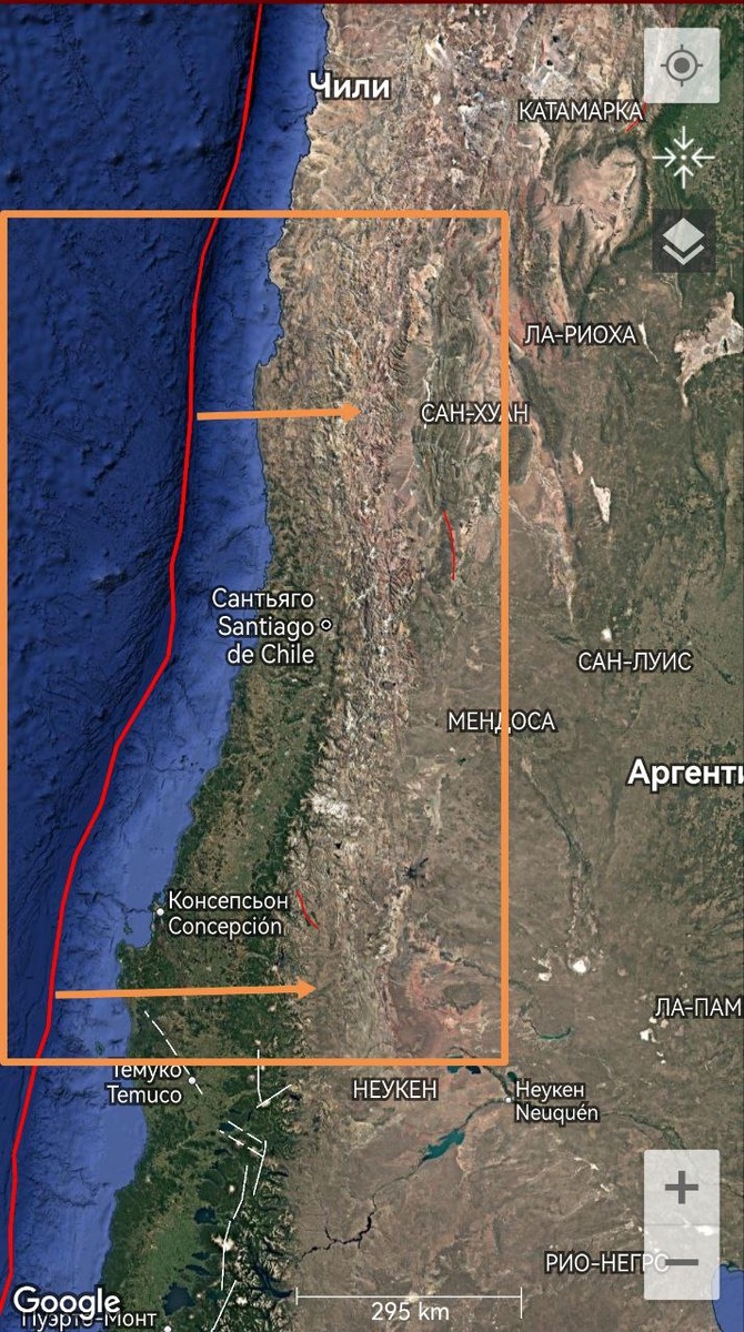 В Южной Америке дегазируется граница Чили с Аргентиной между Консепсьеном и Ла Сереной.
