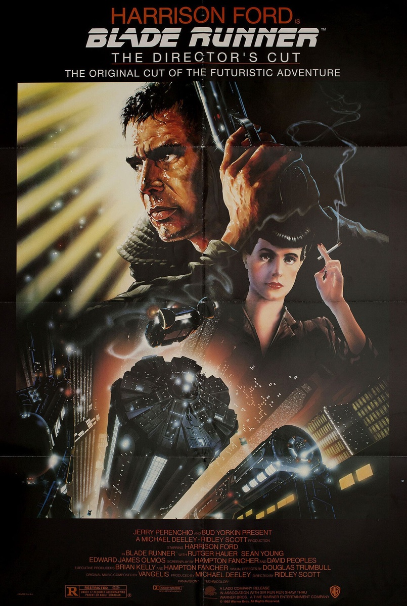 Бегущий по лезвию (Blade Runner, 1982), режиссёр Ридли Скотт, американский постер к фильму, автор Джон Элвин, 1992 год