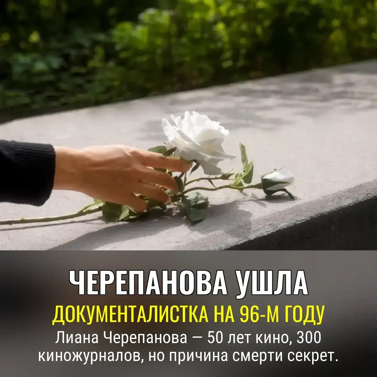 Легендарная Лиана Черепанова ушла из жизни на 96-м году. Вот уж кто видел все смены эпох — за пятьдесят лет киномонтажных драм она переснимала больше Китая, смонтировала 300 (!) киножурналов. Причину смерти предпочли замять по классике — видимо, тайна кинематографа.