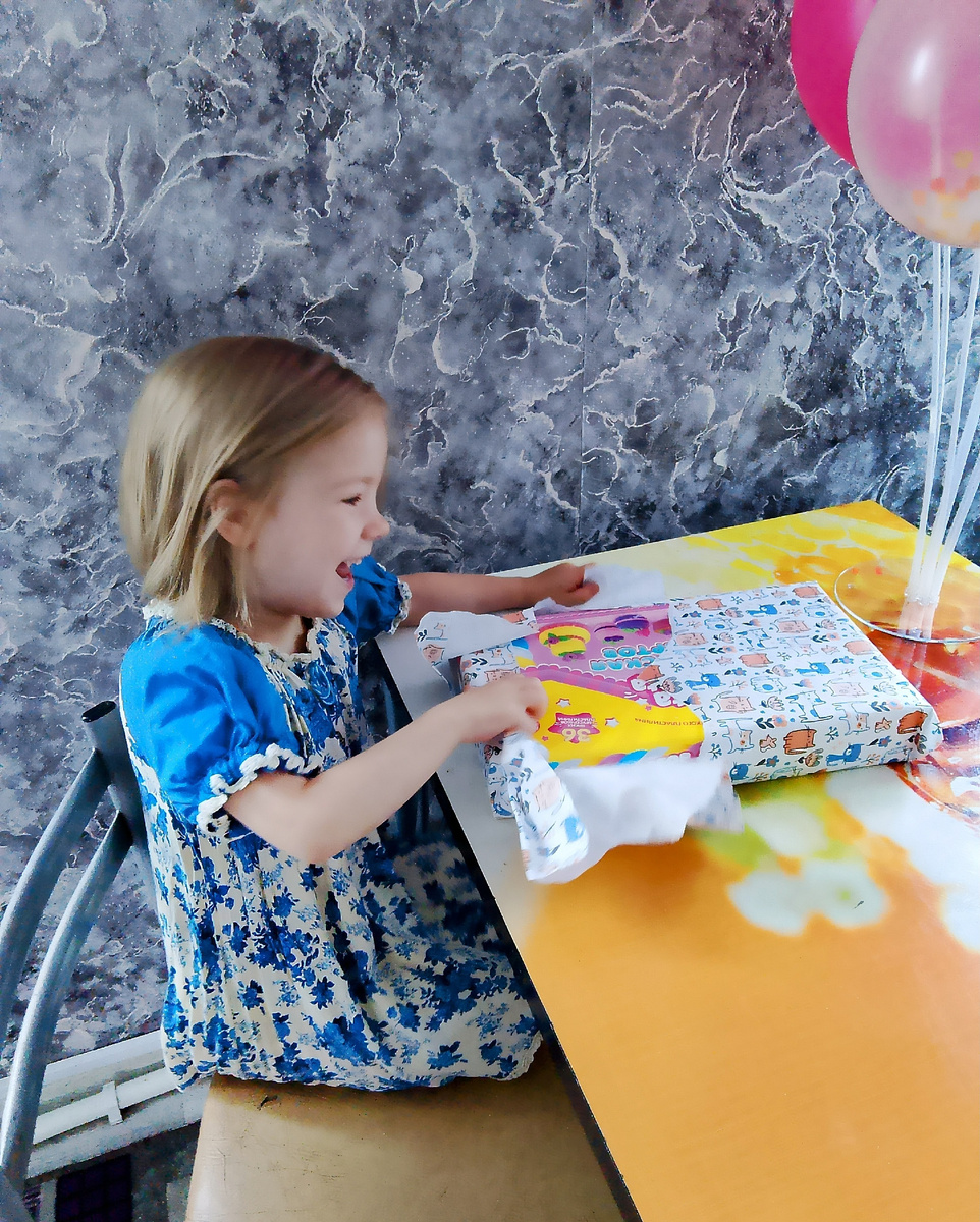 Со среды не писала полноценные статьи надо срочно догонять свой график пока свежо эмоции, хочется оставить этот день не только у себя в памяти но и запечатлеть "на бумаге" Кратко расскажу как провели праздничный день, именно 23 июля, т.к. дочь заявила что день рождение мы будем отмечать три дня 🤦🏻♀️ ну можно так и сказать, подарки она действительно получала все три дня. Накануне пока я занималась уборкой,.папа надул для дочери шарики, натянул растяжку а я упаковала первый подарок, всё это "добро" оставили на видном месте на первом этаже, знаю куда дочка побежит с утра первым делом. Конечно включила детские песни с днём рождения и ждали пока наша принцесса проснётся После первых полученных подарков, дождались пока к нам завезут племянницу. План у нас с мужем был такой сегодня дочку в развлекательный центр со всеми праздничными атрибутами, затем домой готовка на муже горячее блюдо в казане, на мне салаты и бутерброды. Увеселительные мероприятия для дочери решили выдать в половин