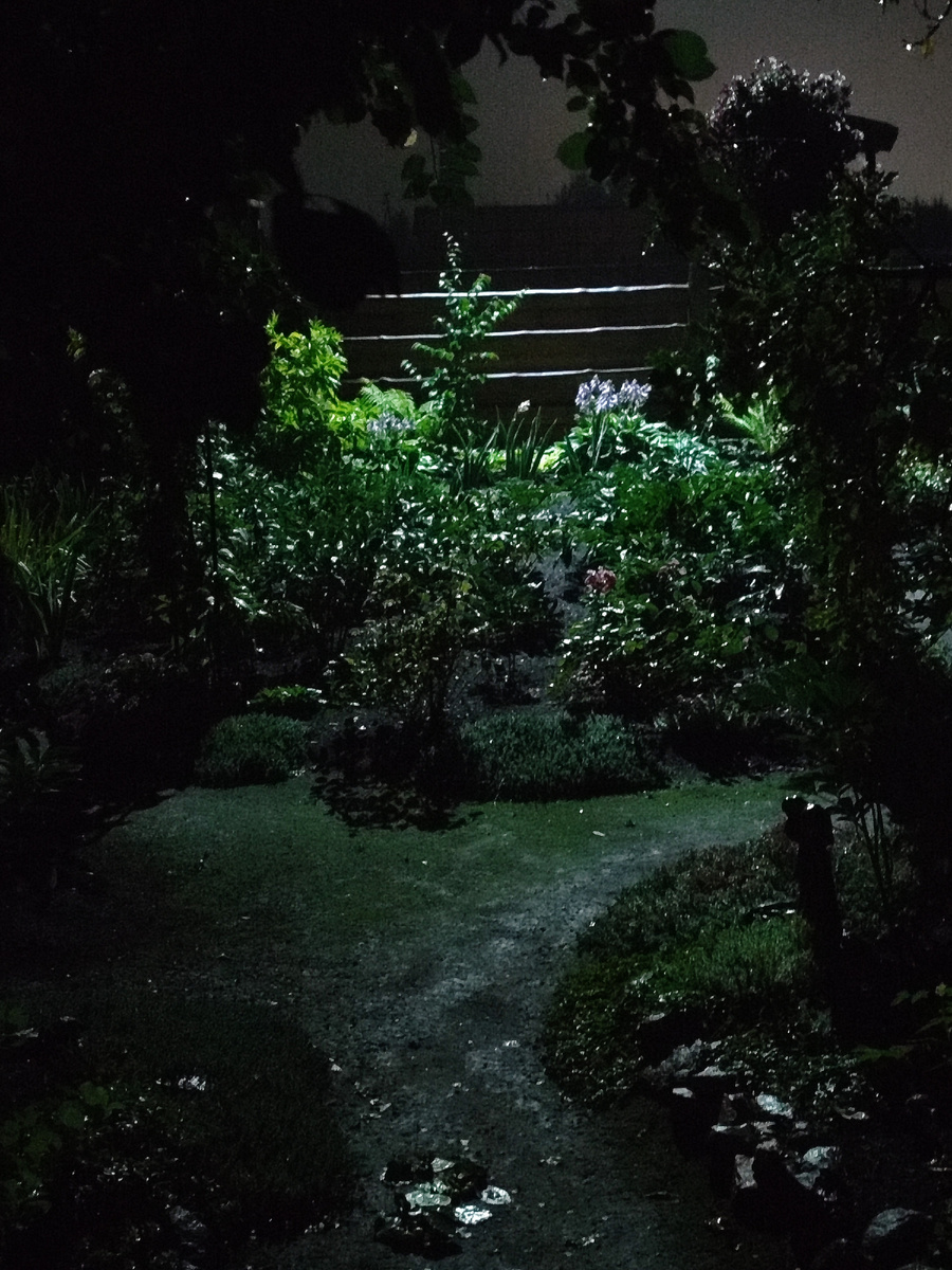 Даже морось мне не помешала насладиться ночным очарованием сада.