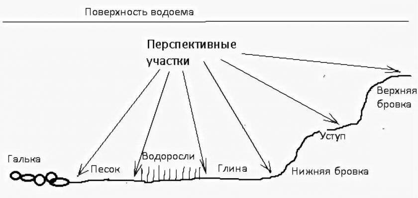 Вода скрывает главное — рельеф дна, а именно он во многом определяет поведение рыбы. Вблизи берега может быть резкий свал, ямка, мель, подводная гряда. Именно такие перепады привлекают рыбу — там, где дно меняется, скапливается корм, и рыба чувствует себя увереннее. С первого взгляда дно не видно, но его можно «прочувствовать»: поплавочной удочкой, донкой, эхолотом — или просто наблюдая за течением и цветом воды. Например, если в одном месте вода темнее — там глубже, если течение «ломается» — возможно, это свал или коряга.