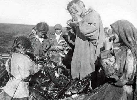 Также исследователи культуры народов крайнего Севера отмечали, что одним из повседневных блюд чукотского народа была кровяная похлебка. Кровь, слитую с убитых животных, готовили с водой, резаной черемшой и сараной – степно-полевым растением.