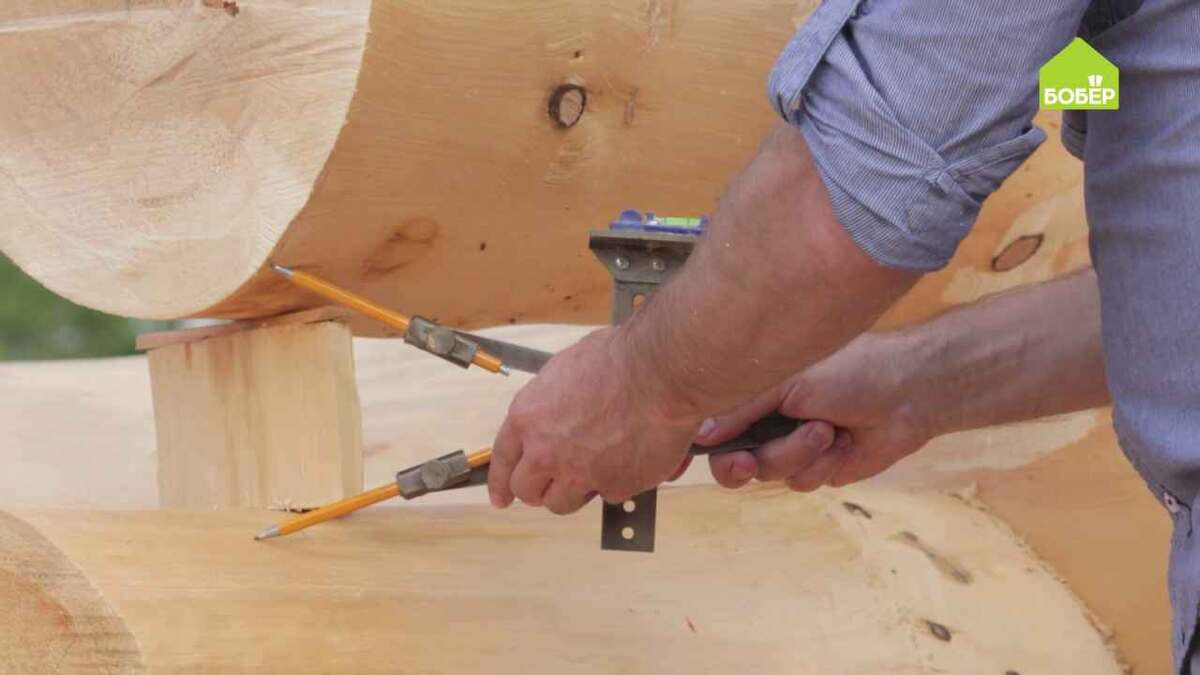 Советы опытного плотника. Выставите нужный размер между частями черты и сделайте разметку. Неровность верхнего бревна передаётся нижнему бревну. После того как будет удалено лишнее, брёвна лягут плотно. Спилите лишнее при помощи бензопилы. Установите бревно на место. ✅ Наш канал, здесь много интересного → zen.yandex.ru/bober