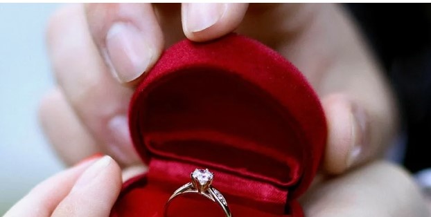 Тут он протянул ей маленькую коробочку, видно заранее ее приготовив. И вот Слава раскрыл коробочку и все увидели там красивое золотое колечко.