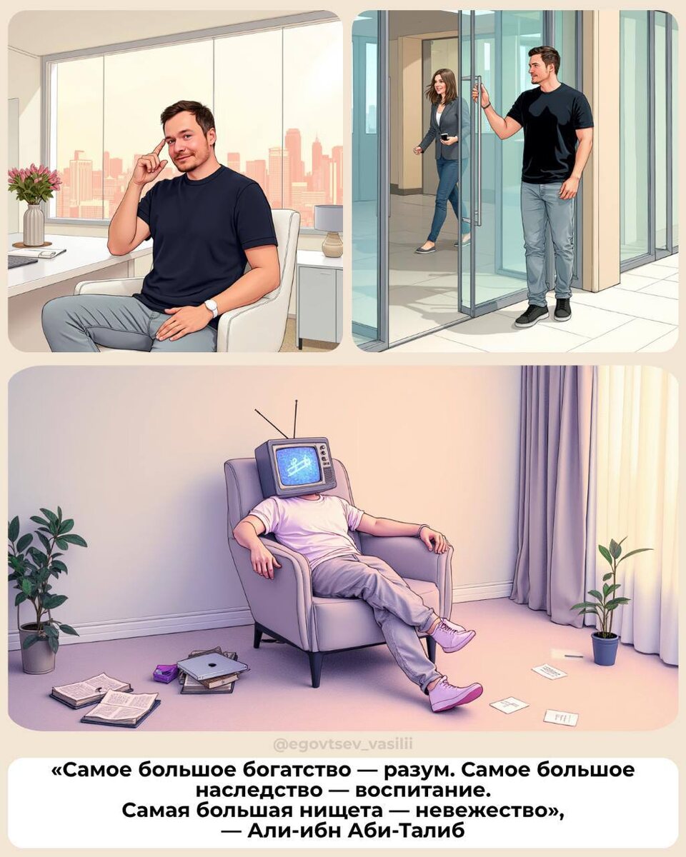 Разум — это не громкий голос. Это тихое внутреннее руководство, которое не нуждается в утверждении. Хорошее воспитание — это не манеры за ужином. Это способность остаться человеком, когда ставки высоки. А невежество… Оно всегда выглядит уверенно. Оно с экрана. Оно с советом. Оно с мнением на все случаи жизни. Только оно никогда не приводит к результату. Поэтому я не учу, как жить. Я показываю, куда приводит умение думать. И если вы ещё выбираете, во что инвестировать — начните с мышления. Ваше — всё ещё самое недооценённое активное имущество.