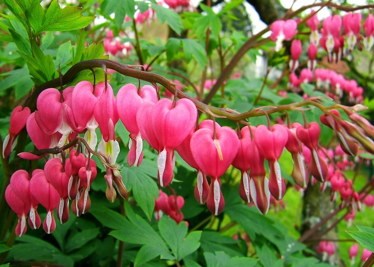 Дицентра, известная как "Разбитое сердце" – нежный и романтичный многолетник с необычными цветами в форме сердечек. Это растение украшает сад весной и в начале лета, придавая ему сказочный шарм. ✔ Дицентра великолепная (Dicentra spectabilis) – классический вид с розово-белыми цветами (высота до 1 м).