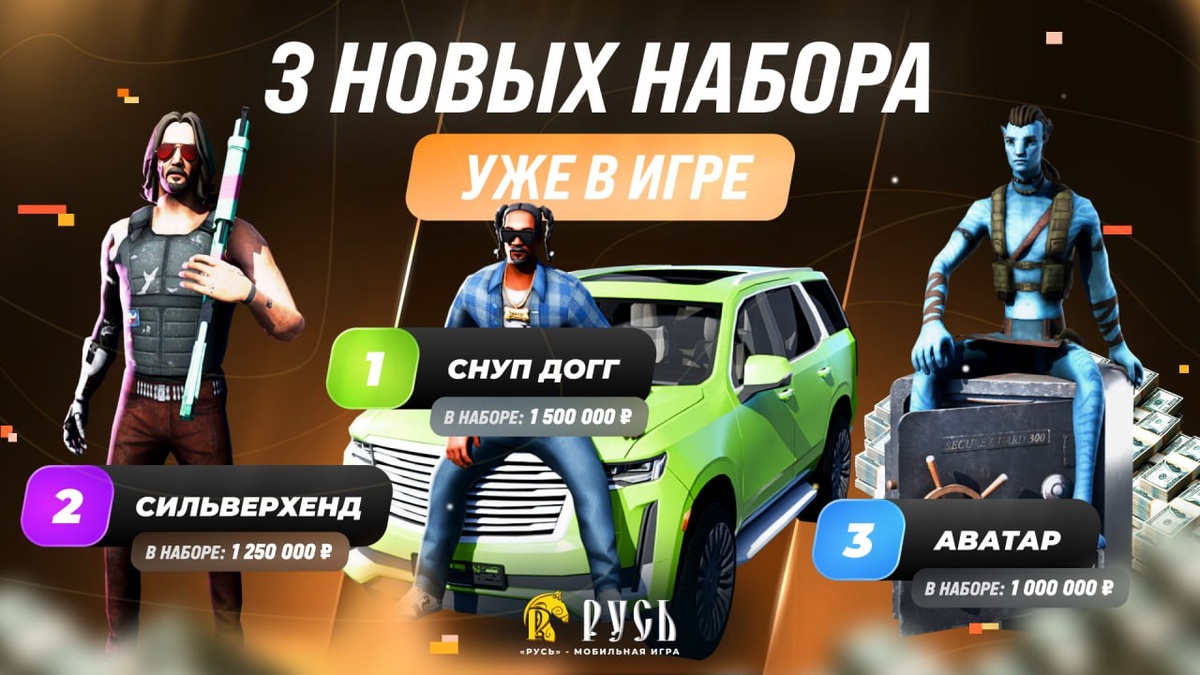 Дорогие игроки! В игре теперь доступны 3 новых набора: Настоящий Gangsta — погрузись в атмосферу улиц с легендарным Снупом Догом! Киберпанк — стань частью будущего с важным персонажем Сильверхендом! Пакет аватар — уникальный образ с легендарным персонажем из культового фильма! Подними свой стиль на новый уровень — выбери свой набор прямо сейчас! 🎮🔥