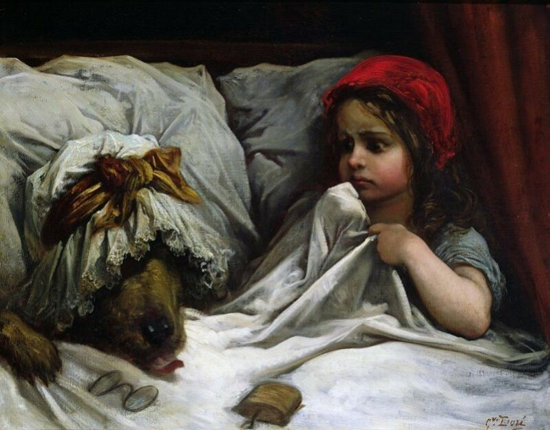 Но Волк — это, так сказать, первая производная реакции. Как-то я уже писал: «Буржуазный Серый Волчище сожрал социалистическую Бабушку, но вынужден был занять её место, нацепить на себя бабушкин чепчик, ленточку, пенсне, натянуть до подбородка бабушкино одеяло и вообще прикрывать свою истинную классовую сущность. Он вынужден даже дружить, или, по крайней мере, изображать нежную дружбу с Красной Шапочкой и другими друзьями Бабушки, которая тем временем медленно растворяется в его желудочном соке».