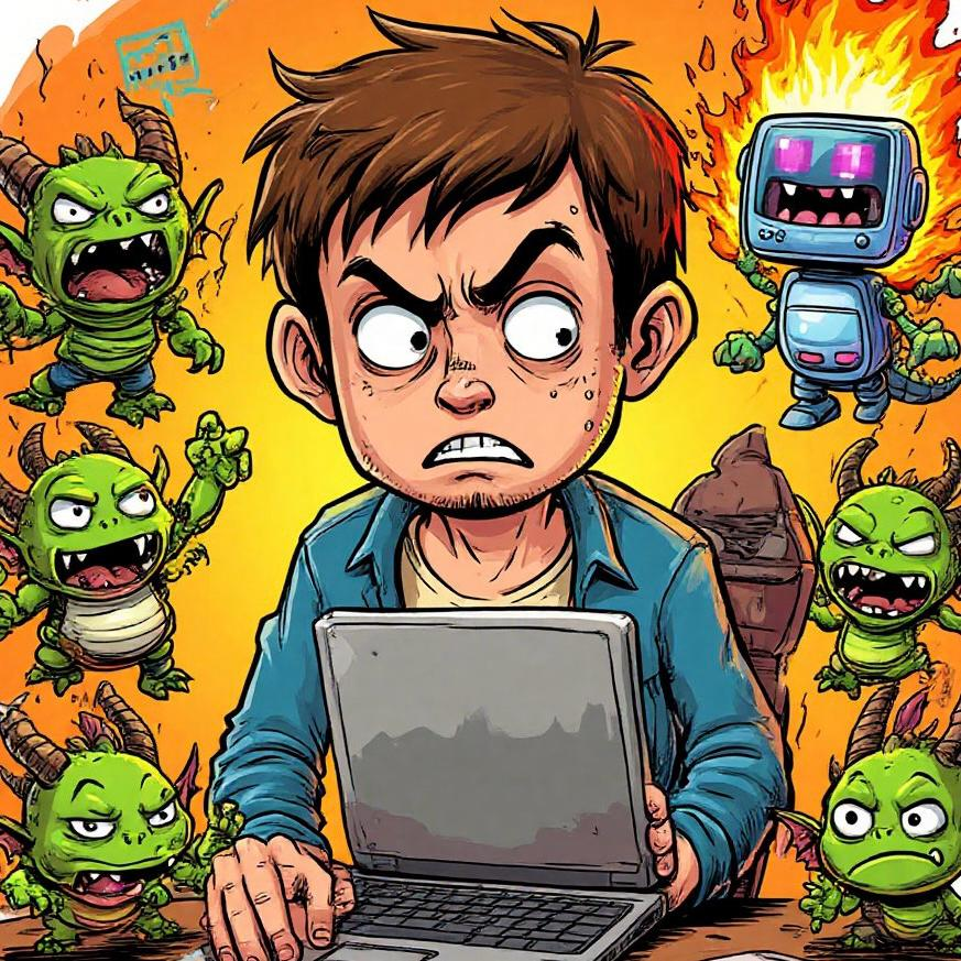 Раньше я думал, что стресс — это что-то большое и грозное, как медведь в лесу. Ан нет. Оказалось, он — стая мелких, юрких гоблинов. Один, Цифровой Дракончик, вечно шипел из экрана, забрасывая меня пиксельным мусором FOMO и уведомлений. Другой, Босс-Гремлин в помятой бумажной шляпке, колотил кулачком по виску, орал про дедлайны и тыкал в спину острыми скрепками. Третий, Критик-Тролль, сидел на плече и шептал гадости на ухо: «Не справишься. Слабак. Все видят, как ты тонешь». А где-то в углу, за пыльным зеркалом в прихожей, копошился Доктор Зловещий-Неудачник, пугая меня тенями недугов, а из-под дивана скулил мягкий Мешок с Долгами-Пушистик. И все они, эти мелкие вредители, поджидали меня за каждым углом моего же дня.