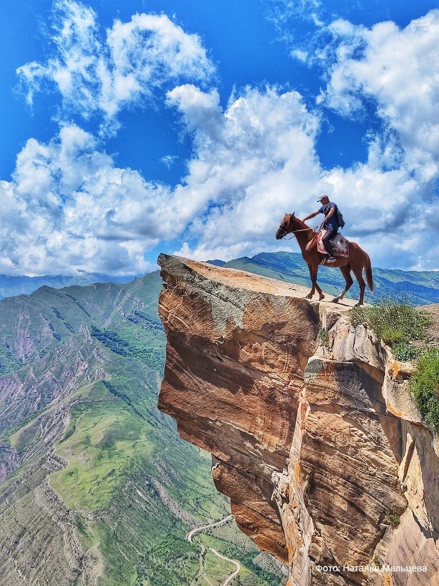 Язык тролля Язык тролля — одно из самых загадочных и живописных мест Дагестана, привлекающее туристов со всей России и мира. Это скальное образование напоминает по форме гигантский язык. Располагается он на краю обрыва с захватывающим видом на каньон реки Аварское Койсу, в селе Гоор Шамильского района. С необычным природным объектом связано множество легенд и преданий. Самая популярная из них рассказывает о сказочном существе — тролле, который обитал в этих горах и оставил после себя каменный след. Другая повествует о прекрасной девушке, которая по воле злых сил была превращена в камень. С этой легендой связано второе название Языка тролля — Девичья скала. Согласно третьей истории, скалу назвали так, потому что девушки бросались с нее вниз из-за несчастной любви. Туристы, желающие увидеть Язык тролля, обязательно посещают и руины старого села Гоор. В окрестностях есть и другие интересные места: каньоны, водопады и пещеры. Здесь также можно пообщаться с местными жителями и узнать об