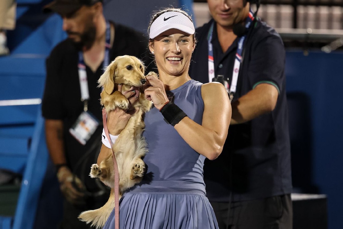 Собака Анны Калинской выбежала на корт после победы теннисистки в Вашингтоне