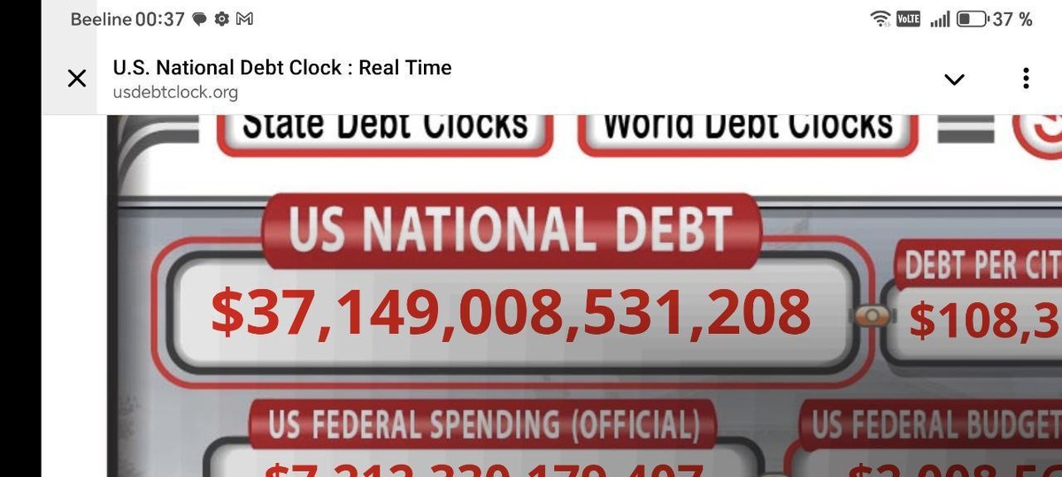 ❗️ Министерство финансов США призывает граждан США помогать в погашении национального долга страны перевалив его за 37,1 триллиона долларов