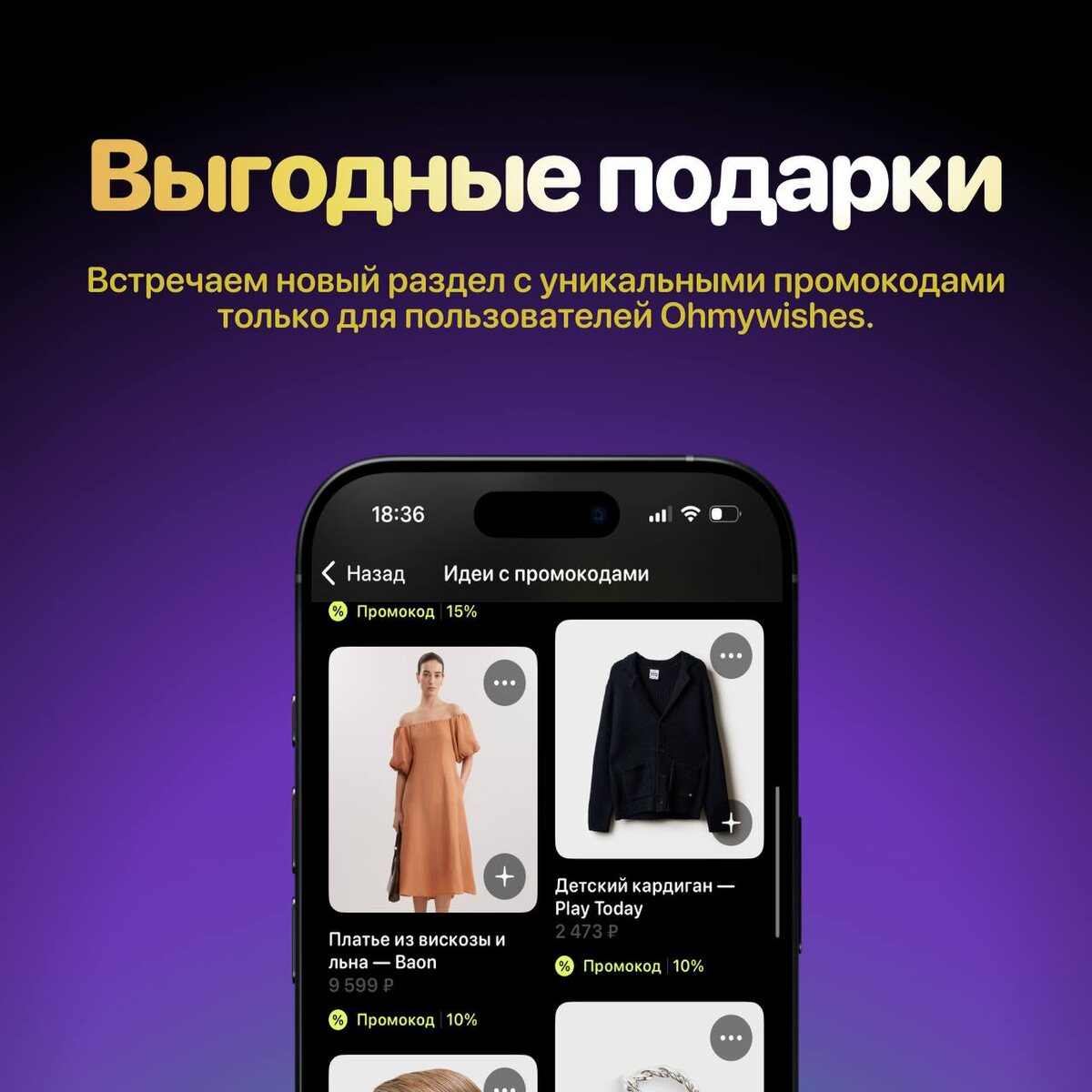 Заглядывайте в наш новый раздел «Идеи с промокодами» — мы собрали самые выгодные промокоды, которые доступны только нашим любимым пользователям. 🤍