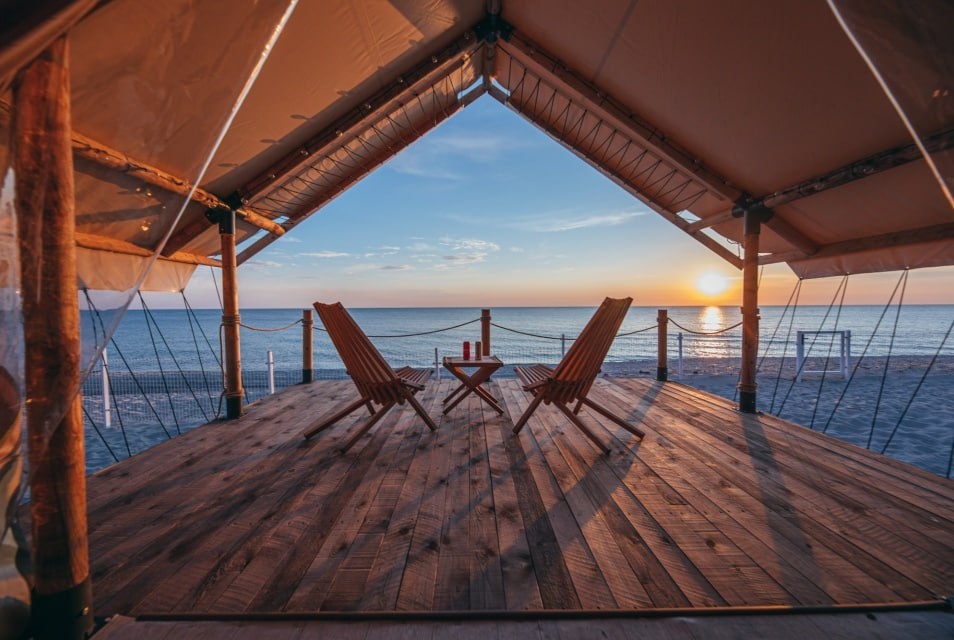 Глэмпинг на берегу Балтийского моря. Можно взять тент или дом. Цены... Ну от 13239р за ночь. Это за тент )