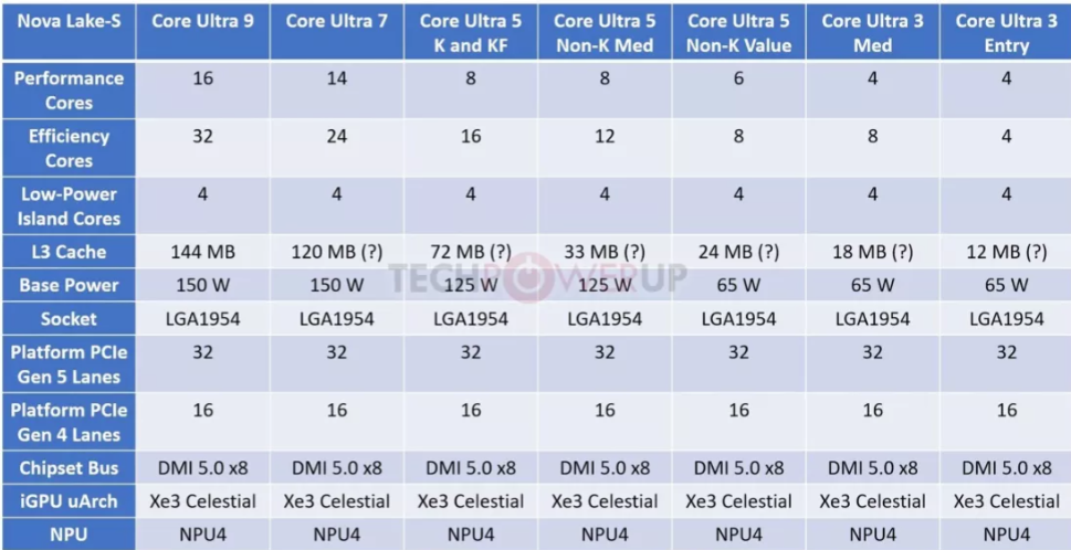 Процессоры Intel Nova Lake-S получат до 52 ядер и будут включать модели Core Ultra 3, 5, 7, 9