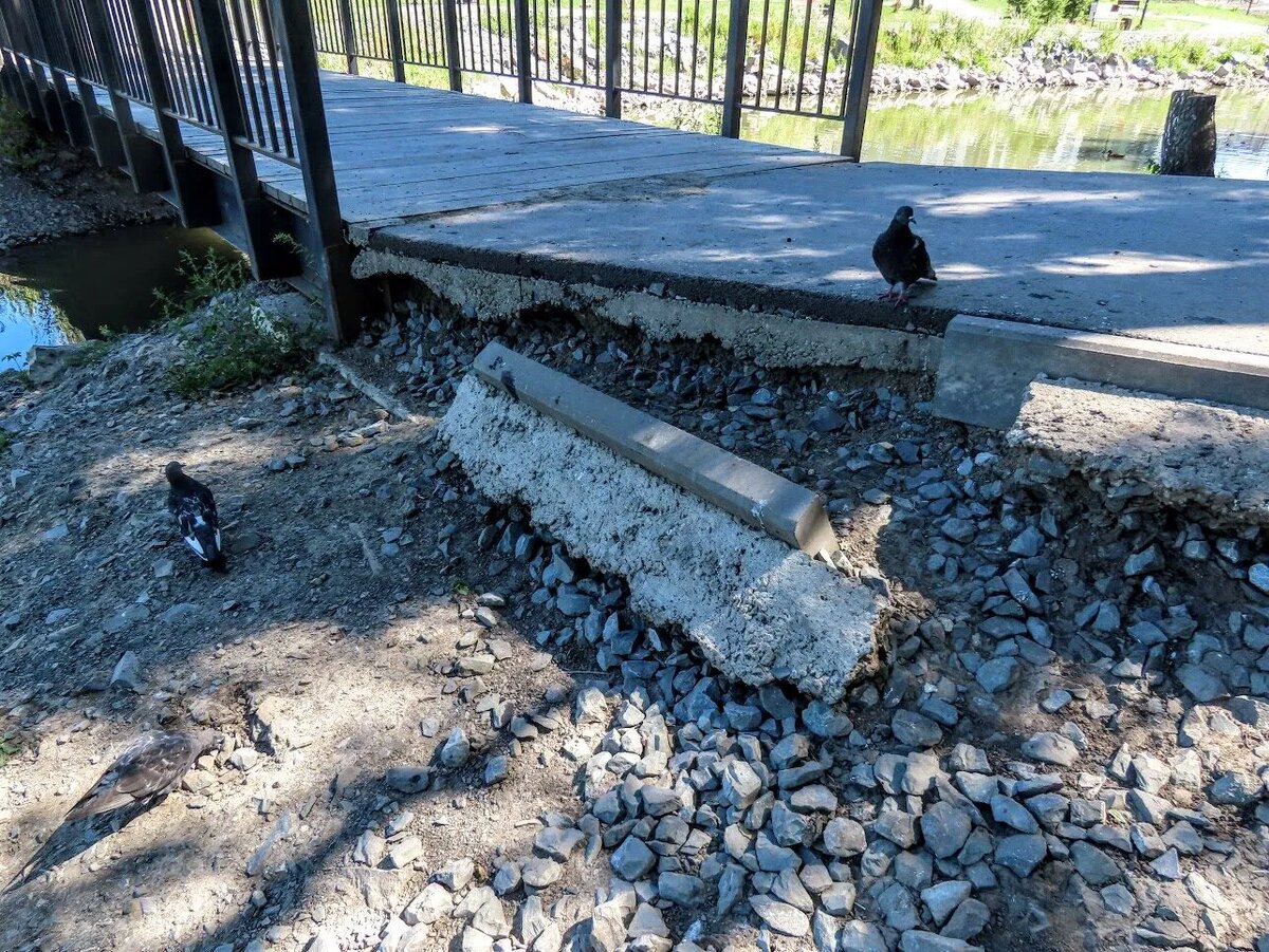 Снова жара + 28 и ни облачка на небе. Засуха на земле. Люди приходят, уточек кормят, гуляют, но тоже возмущены недоделками и запах там неприятный от воды. Недавно открывшаяся парковая зона у ручья Суховского должна была стать новым любимым местом отдыха для жителей города. Однако, вместо обещанного оазиса спокойствия и красоты, мы получили картину запущенности и уныния, которая вызывает скорее разочарование, чем радость. Ручей, потерявший свою чистоту: Первое, что бросается в глаза при посещении парка – это состояние самого ручья. Суховский ручей, некогда, возможно, живописный водный поток, теперь выглядит удручающе. Он заилился, вода приобрела странный, неприятный цвет, а берега усеяны мусором. Это зрелище не только портит эстетический вид парка, но и вызывает опасения за экологическое состояние водоема. Следы незавершенности и халатности: Прогулка по парку также выявила множество признаков незавершенности и халатности. Спиленные берёзы, так и валяются неубранные, создавая впечатление