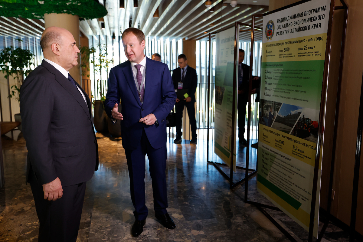 Губернатор Алтайского края Виктор Томенко представил Михаилу Мишустину основные направления региональной программы развития. 🔹Экономика Алтайского края в 2024 году показала рост на 4,2%. Промышленность выросла на 5,8%, показатели сельского хозяйства увеличились почти на 15%. 🔹По итогам 5 лет в регион привлечено более 22 млрд рублей внебюджетных инвестиций. Это позволило создать более 5,8 тыс. рабочих мест. 🔹Под кураторством вице-премьера Дмитрия Патрушева в Алтайском крае реализуется 5 приоритетных инвестиционных проектов: 📍разработка Корбалихинского месторождения полиметаллических руд, 📍строительство комплекса сооружений текстильной отделочной фабрики в Барнауле, 📍строительство животноводческого молочно-товарного комплекса в Заринском районе. 🔹Благодаря комплексному развитию сельских территорий более 3,1 тыс. человек улучшили свои жилищные условия. В селах благоустроено 264 объекта – парки, детские и спортивные площадки. 🔹С 2020 года построено более 13 км распределительных газ