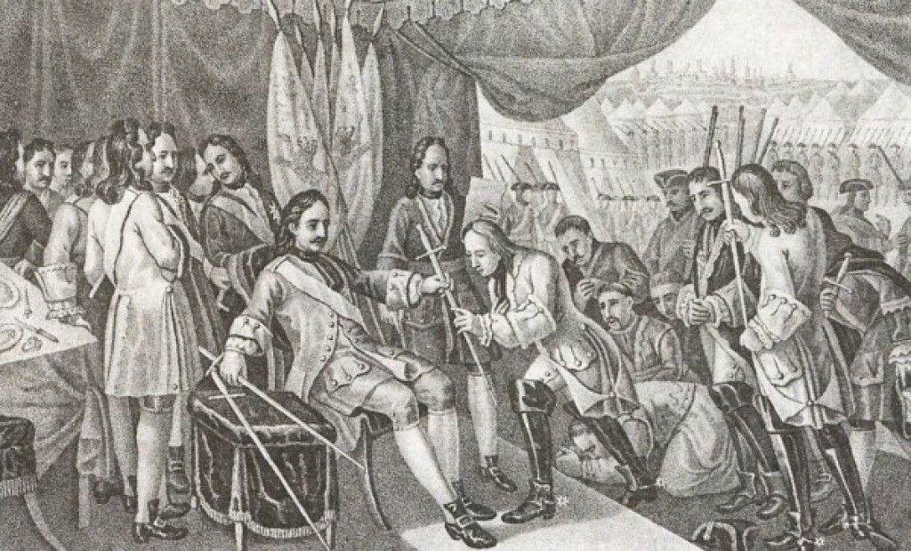 26 июля 1709 года Петр I после победы под Полтавой триумфально въехал в Киев, где пробыл целый месяц. В Святой Софии был отслужен благодарственный молебен за дарованную победу.«Не в новосозидаемой столице, не в первопрестольной Москве, но здесь, в стольном городе Святого Владимира, совершалось молебствие Господу за дарованную победу».