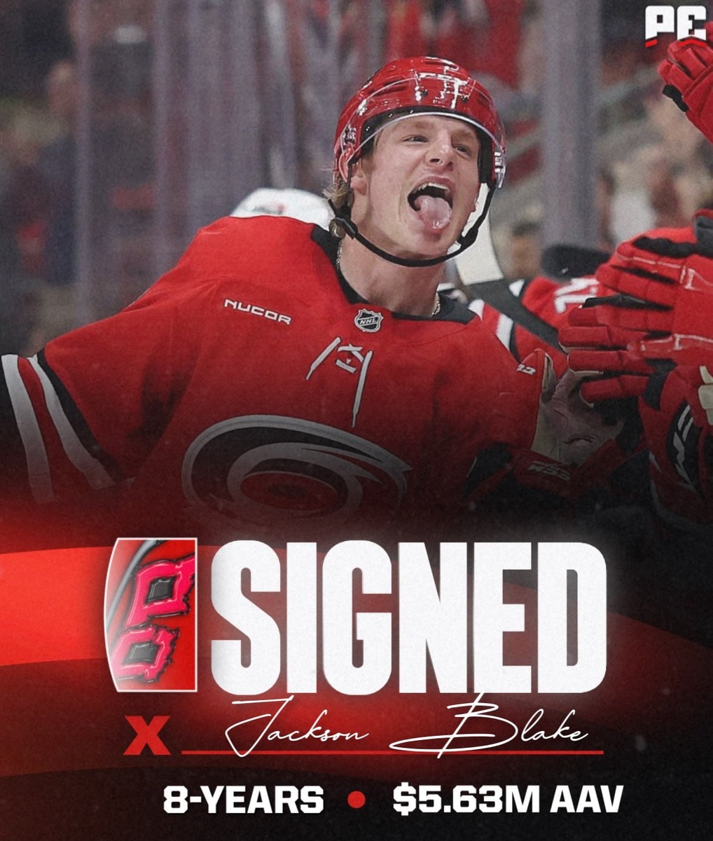 Джексон Блэйк и его новый контракт Уж не знаю, какие слова нашёл Тульски, чтобы уговорить Джексона Блэйка заключить восьмилетнее соглашение с кэпхитом 5,625 млн $. Сделка зарегистрирована 24 июля, но в карточке на Пакпедии до сих пор не обозначены какие либо бонусы и / или запреты на обмены и перемещения. 21-летний форвард провёл один полноценный сезон: 80 игр, 34 очка (17+17). В плей-офф 3+3 в 15 встречах. Он хорошо раздаёт передачи, находит партнёров, весьма полезен в форчеке и контроле свободного пространства. Потенциал Джексона сопоставим с потенциалом его отца, Джейсона Блэйка, который пять раз за карьеру набирал более 50 очков, был хорошим двусторонним форвардом, забросил более 200 шайб за 13 сезонов. Да и по рисунку игры отец и сын очень схожи. И вот так сразу после одного сезона ему дают восьмилетний контракт, к завершению которого игроку будет 29 лет. По идее, ещё успеет подписать "контракт всей жизни", только вот срок его будет куда короче. Надо ли было просить мостик сей
