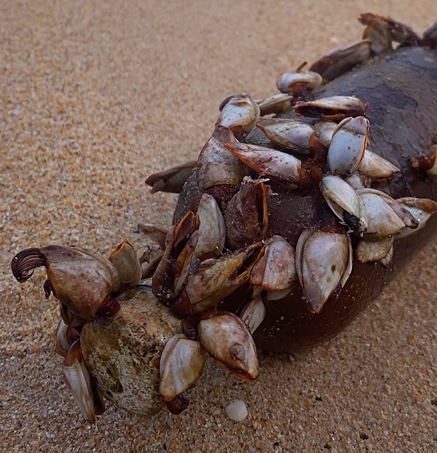 Вы когда-нибудь замечали, как море выбрасывает на берег мусор, покрытый странными ракушками? Это может быть пластиковая бутылка, кусок дерева или обломок канистры, и вся поверхность усеяна живыми существами, которые медленно шевелятся. Многие думают, что это что-то вроде устриц или мидий. Но на самом деле перед вами - морские уточки. Эти существа одновременно выглядят инопланетно и при этом невероятно интересно. Чем больше узнаёшь о них, тем больше поражаешься, насколько увлекателен подводный мир. Морские уточки - это не ракушки и не моллюски, хотя внешне они на них и похожи. На самом деле это ракообразные, принадлежащие к отряду Cirripedia - ближайшие родственники крабов, омаров и креветок. У них есть твёрдая оболочка, внутри которой спрятано мягкое тело, и специальные щупальца - цирры, которыми они фильтруют планктон из воды. Самое интересное - то, где и как они живут. В отличие от подвижных крабов, морские уточки ведут прикреплённый образ жизни. Сами они никуда не перемещаются, а к
