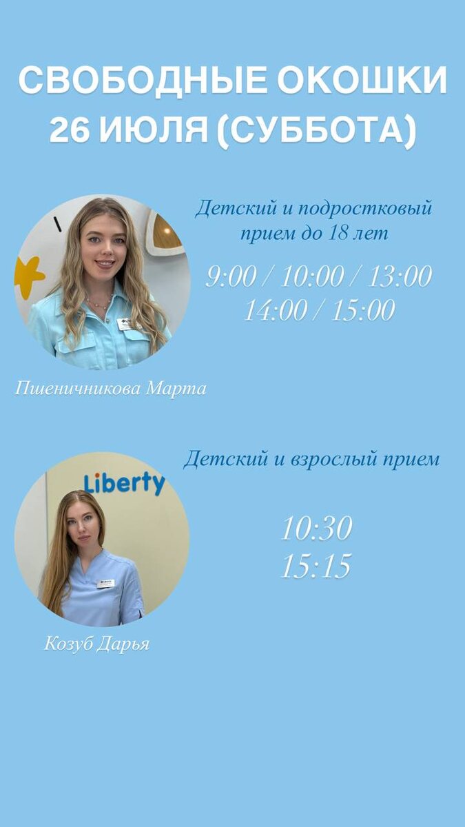 Дорогие друзья! На сегодня есть свободные окошки к нашим врачам-стоматологам