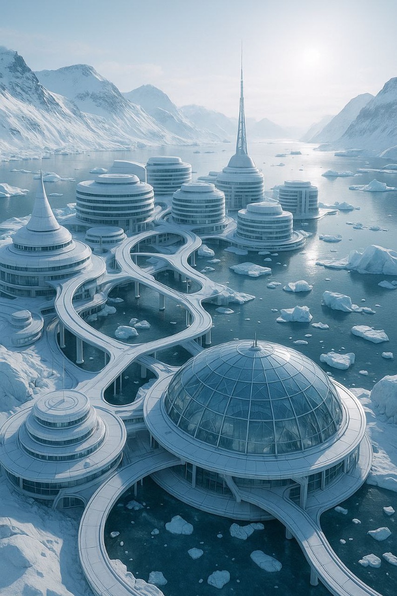 🧊 Будущее Арктики уже наступило Что увидит исследователь, оказавшись завтра в Заполярье? Всё чаще работа в Арктике выходит за пределы физического мира. Здесь, на стыке вечной мерзлоты и цифровых технологий, формируется Научный Виртуальный Арктический Мегаполис — экосистема, существующая в пространстве данных, знаний и автономных систем. 📡 Что это? Это не город в привычном смысле. Это сеть интеллектуальных кампусов-кластеров, разбросанных по Арктике и управляемых Суперинститутом — искусственным интеллектом, который координирует работу, энергию, логистику и науку. ☁️ Кампусы существуют в двух реальностях: – как физические центры сбора данных, – и как голографические проекции в облачных сетях. 🚀 Доставка между ними идёт через беспилотные дроны, а проекты рождаются в цифровых коворкингах. Здесь нет улиц, но есть информационные проспекты, по которым движутся потоки знаний. 🌍 Люди живут между двумя мирами: днём — в виртуальной реальности Мегаполиса, вечером — в домах на простора