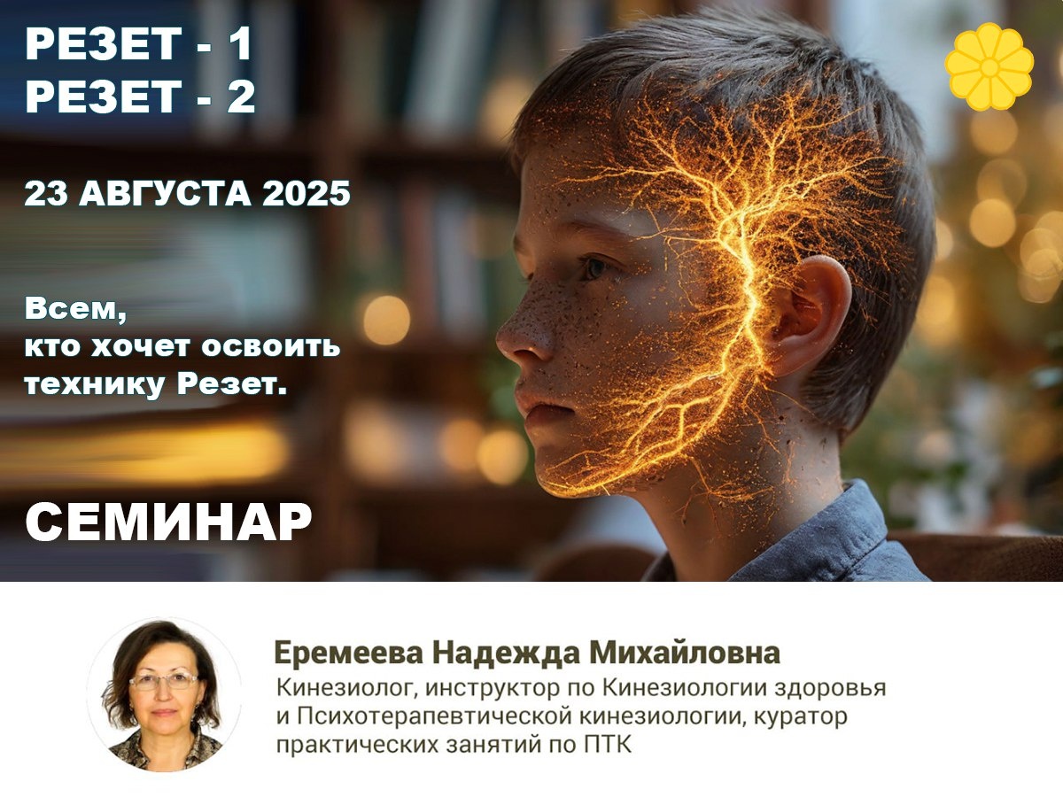 Дорогие друзья!🌿 Продолжается запись на семинар "РЕЗЕТ 1,2", который будет проведен 23 августа 2025 года Семинар проведет Еремеева Надежда Михайловна — кинезиолог, инструктор по Кинезиологии здоровья и Психотерапевтической кинезиологии, куратор практических занятий по Психотерапевтической кинезиологии. ✅Многие медицинские специалисты, в том числе и стоматологи успешно используют метод в своей практике и уже подтвердили его эффективность ✅Уникальность работы с РЕЗЕТ заключается в том, что освоить его могут при желании все, а результат не заставит себя долго ждать ✅На сегодняшний день РЕЗЕТ одна из самых мощных техник, которая мгновенно снимает напряжение в челюсти и приводит к почти моментальному облегчению боли Подробнее о семинаре можно узнать ПО ССЫЛКЕ или на нашем САЙТЕ
