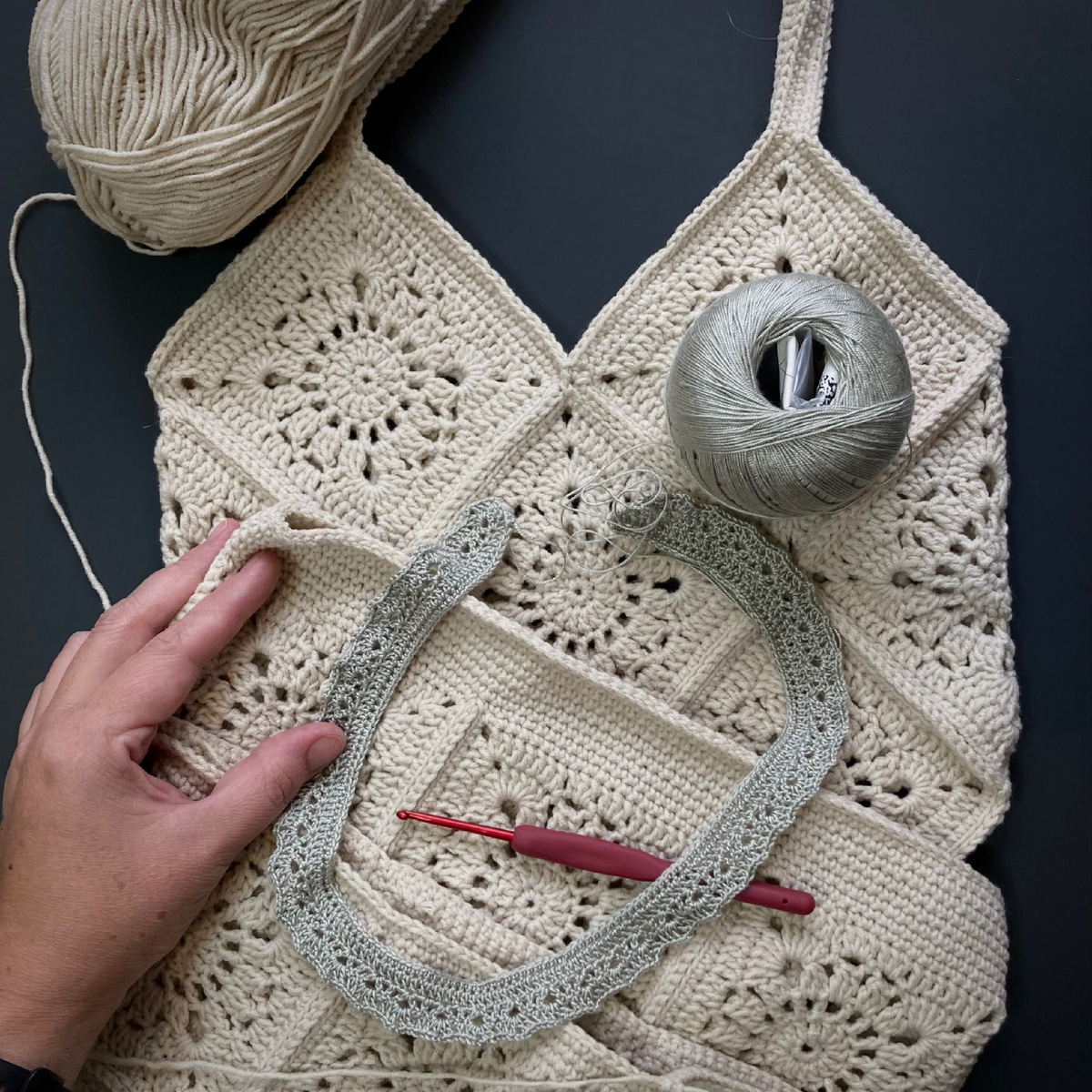 Большую часть мы с дочкой закупили ещё в начале июля, осталось подбить, докупить и взять мед.справку для урока физкультуры. Дочь занимается по обычной программе, без освобождений, но справку предоставить надо. Предыдущие года, мы брали справку на основании мед.карты, в этом году мы как всегда пришли в поликлинику, нужны анализы и экг, оказывается требования ко всем. Врач в отпуске, кабинет экг недоступен, сдали только анализы. И конечно же очередь к педиатру, очередь на сдачу крови… что делать- вязать! В работе: - сумка крючком; - шоппер крючком; - воротничок крючком. Для этих вязаных проектов отдельная сумка не нужна, беру пряжу и крючок, все в дамскую сумку и по делам 😉 А вечером или рано утром вяжу процессы спицами 😉 Вот такой круговорот процессов ☺️