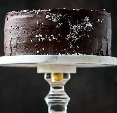 8. Для сборки покрываем кремом каждый бисквит, собираем их все вместе и покрываем кремом весь торт, разгладив слой крема большим шпателем. При подаче посыпаем торт крупной морской солью.