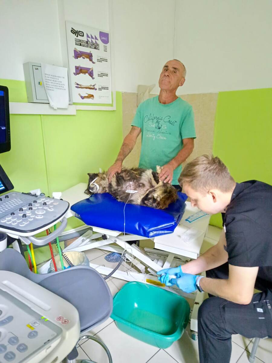 Местные жители не смогли оставить животное в беде и обратились за помощью в наш приют «Возрождение». Сотрудники быстро отреагировали на просьбу о помощи и оперативно выехали на место происшествия. После осмотра специалисты поняли, что ситуация критическая, и срочно повезли собаку в ветеринарную клинику.