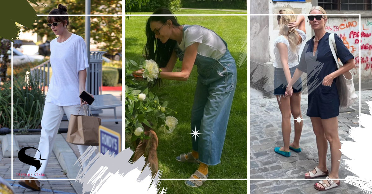 Дакота Джонсон тоже была замечена в этом стиле. Если вы ищете новые сандалии, которые по удобству и универсальности не уступят вашим любимым кроссовкам, вы попали по адресу. Мои летние планы включают в себя отдых на пляже и вечерние часы с друзьями на закате, а также неспешные прогулки по городу. Хотя мне нравятся симпатичные туфли с открытым мыском и ремешками, они не так хорошо поддерживают стопу, как сандалии с мягкой пробковой стелькой. И я не единственная, кто так думает — многие знаменитости тоже выбирают удобные сандалии, которые плотно облегают стопу, обеспечивая комфорт в течение всего дня. Гвинет Пэлтроу недавно опубликовала в соцсетях свою коллекцию "Выбор на лето", включающую распроданные босоножки Birkenstock Arizona French Piping. Мы также берём пример с Деми Мур, которая в начале этого месяца носила комбинезон с широкими штанинами и босоножки Arizona Birkenstock из овчины, работая в саду. Тем временем, Дакота Джонсон была замечена в классических босоножках Birkenstock