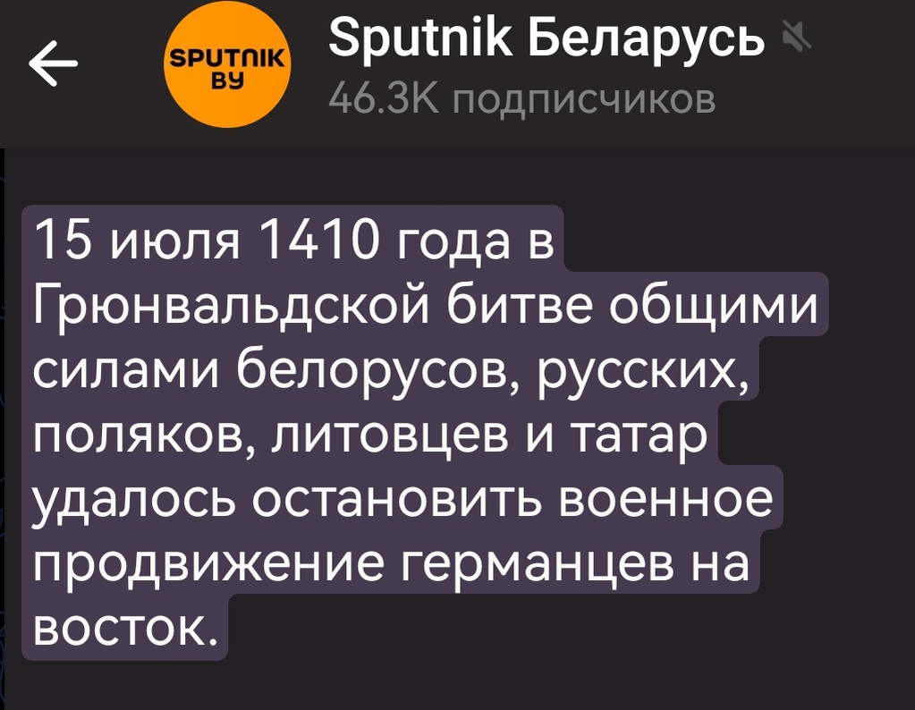 Последние подходы показывают, что современные белорусские земли позиционируются как всё время страдавшие от внешнего военного воздействия, а тут никому не известные в 15-ом веке белорусы в составе войска Великого княжества Литовского и Русского разбивают крестоносцев.